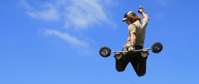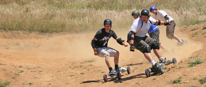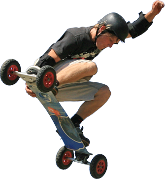 Mountainboards are also known as 'All-Terrain Boards'. These four wheeled boards will cruise over almost any surface - grass, dirt or pavement. All you need is a slope and gravity does the rest.